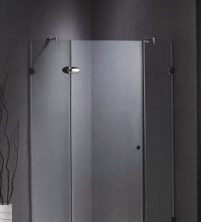 | Simple neo-angle shower to save on non-existant square footage in this itty-bitty master bath |